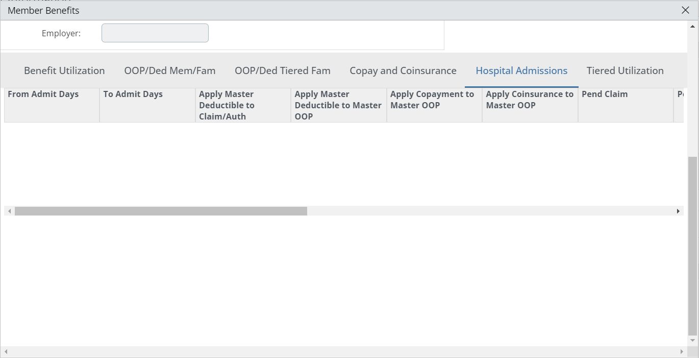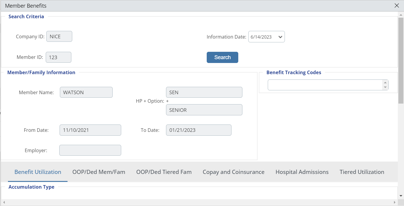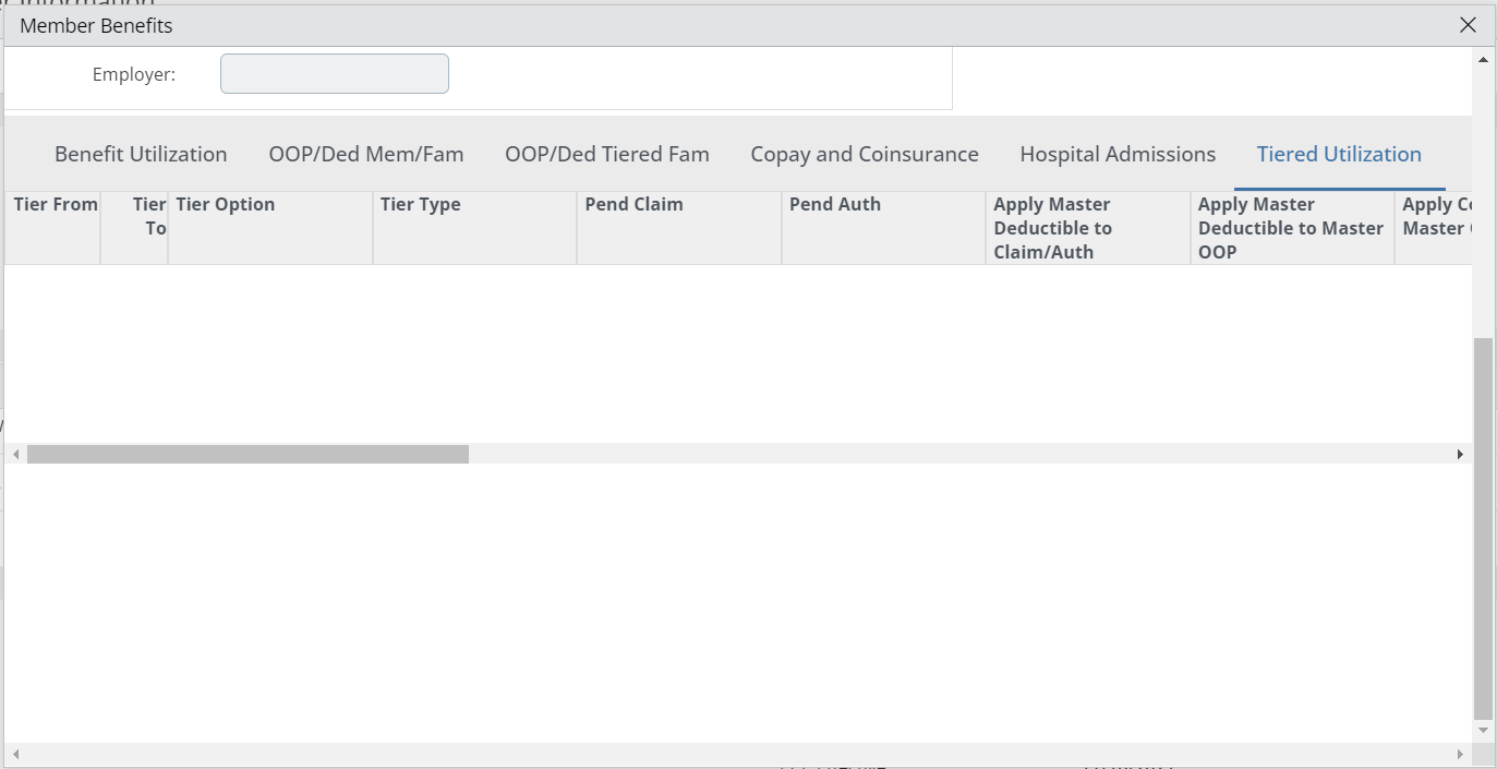 Tiered Utilization tab on the Member Benefit screen displays Tiered Utilization information for the member if applicable.