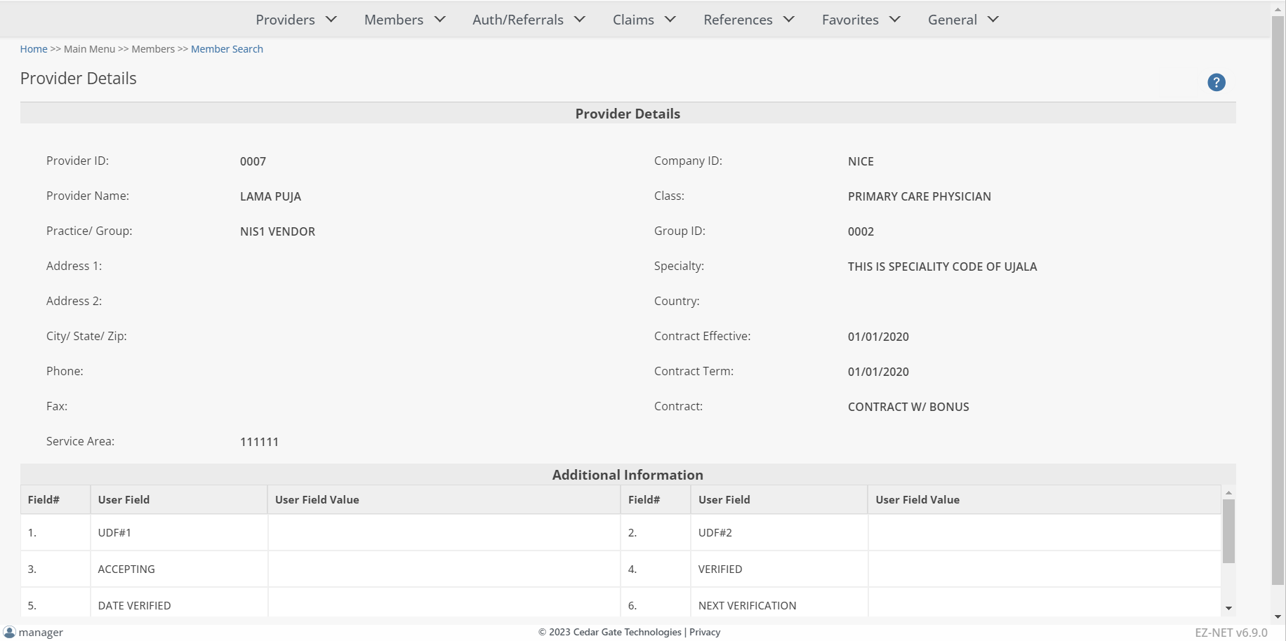 To view additional provider information, click on the Provider’s Name (under the “Ref Provider” column in BLUE text) to open the Provider Detail window.