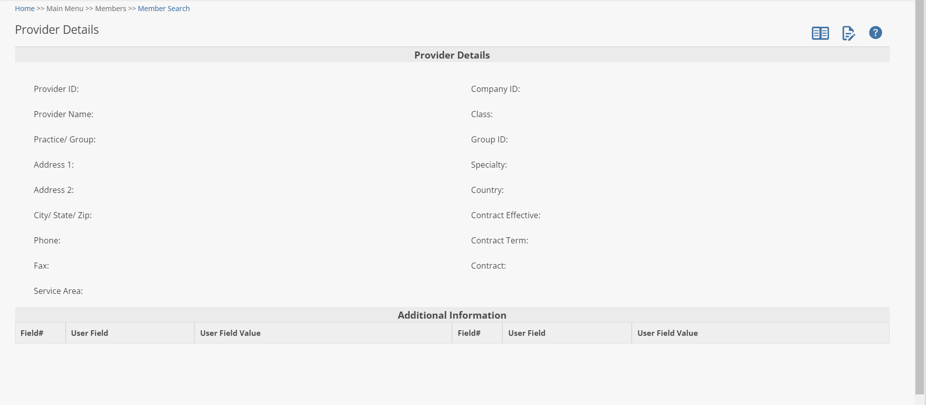 To view additional provider information, click on the Assigned Members, Health Plan Affiliations, or Office Locations buttons. (See ‘Displaying Additional Provider Information’ in the Provider Inquiry section to view these windows)