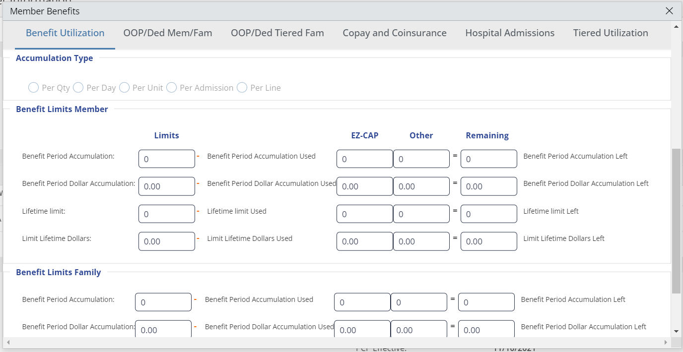The first screen is the Benefit Utilization screen. This is where the user can view the member‘s annual and lifetime unit and dollar limits and usage.