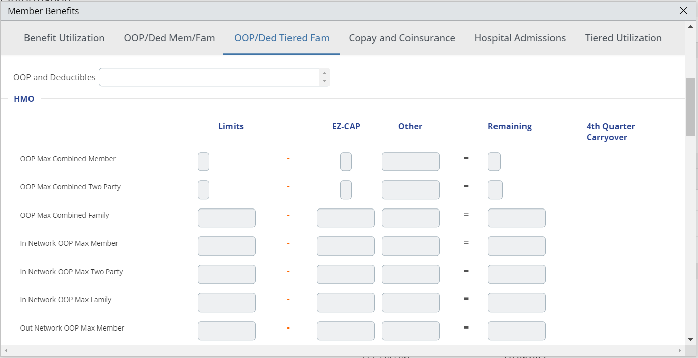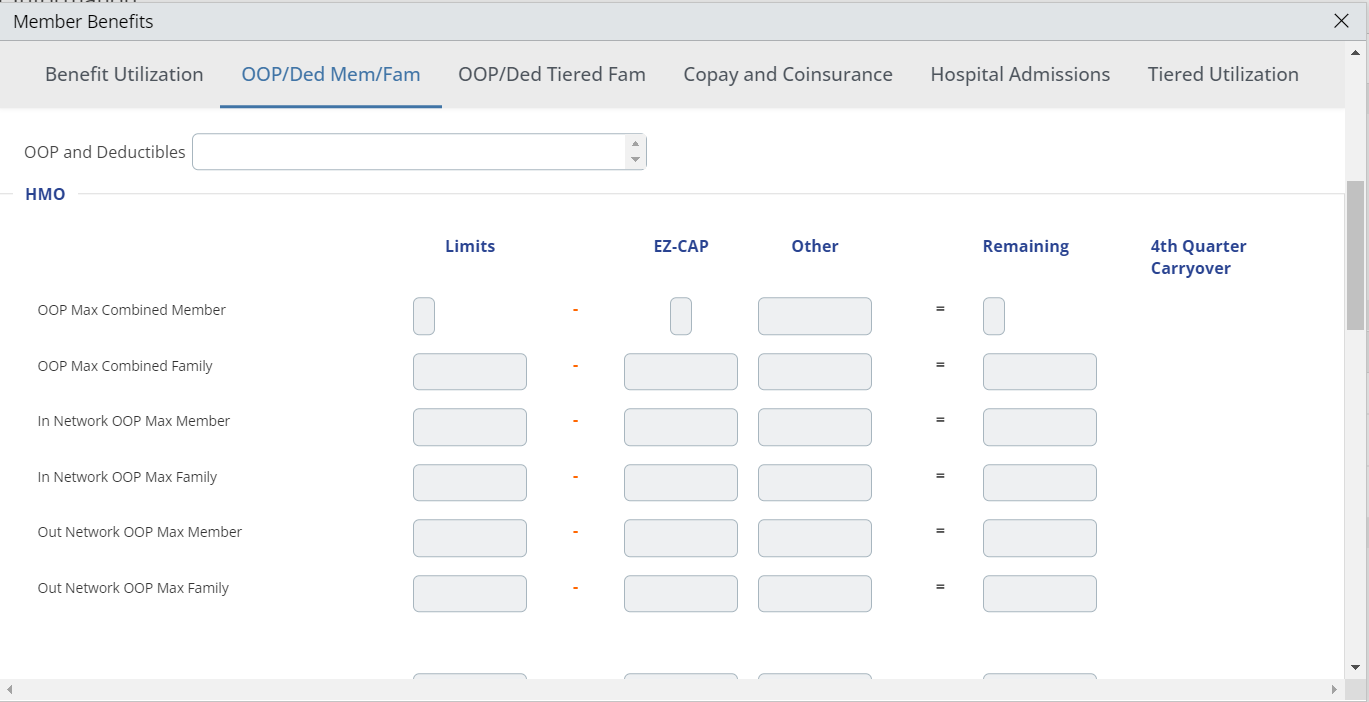 Member Benefits- 'OOP/Ded Mem/Fam' Tab